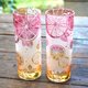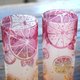 此为喷砂雕刻上切片水果的淡色玻璃杯,称为“Shabo Glass”。