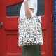 安全无毒纯棉帆布制成,手工艺级车缝制造, 一长一短织带实用设计,印上细腻精致的花朵图案,不同风格的美丽花束拼凑成一个小圆圈,甚有经典复古的味道-成为独一无二的时尚多途平面袋