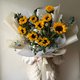 本花束以10朵向日葵为主,搭配当季花材、叶材。