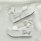 采用柔软的 PU 皮革,鞋底触感极致绵软。 此款设计完美搭配能盖住鞋面的礼服,让您站立一整天也毫无负担,双脚不感疲惫或磨伤。 可订制于鞋面绣上名字,选用水晶或绣线,呈现银色光泽。