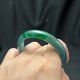 这只玉镯透光呈现蓝色调,质地很细腻,一面有着像喷色机尾端的雾化云,一面带着非常顶级的翡翠绿,不论是投资或是自用,这只都是非常优秀的选择。