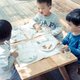兄弟姐妹坐在一起完成活动,
