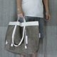 袋身一块布用折叠方式缝制,做出多个收纳间隔,保留原布边。