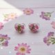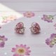 这款耳环由设计师亲手栽种的自家花园里的干燥花,经过树脂封存制成。 将花朵与爱心造型模具结合,粉嫩的花色与可爱的爱心造型,让这件饰品散发出格外清新甜美的气息。