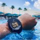 我们使用蓝宝石玻璃作为手表的表镜,这材料抗磨损防刮花,它的莫氏硬度为9,比普通玻璃硬度更高。底盖也有特别的透视设计,让你可以观察到自动上链的机芯。