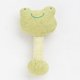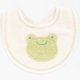 以青蛙为主题的三件式:迷你围兜、摇铃和袜子。