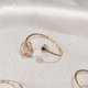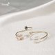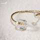 ✦人造锆石✦经切割后展现水晶般光泽,与镀14K金戒身相映成趣,简约中带有轻奢质感。双锆对称存在,又不对称造型的设计,让视觉变化更丰富,开口戒围可自由微调,轻盈贴合,适合日常配戴。
