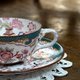 一组绝美、典雅的茶杯组由法国知名陶瓷品牌 Sarreguemines 制作,采用英国 Minton 风格的花鸟纹饰,展现东西融合的艺术之美。这类风格于20世纪初期极为流行。