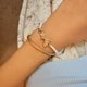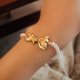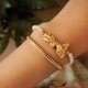 “Candy Holiday”蝴蝶结手链灵感来自节日礼物上的缎带结,象征被珍视与被爱的心意。中央立体金色蝴蝶结造型细致柔美,呈现高级光泽,搭配一侧温润珍珠串珠,营造甜美却不过分可爱的优雅气质。