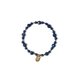青金石以深蓝色为主要的基底色调,并因内含母岩方解石而生成的白色纹路,其金色点状的图样是因矿石中的黄铁矿和铬而形成,表面如星空般,充满奇幻并丰富的色彩。主要由蓝色矿物组成的综合体,数千年古埃及人就发现此天然石,不仅使用于珠宝饰品设计中,也因其色彩及成分而作为绘画的颜料,其色彩称之为"群青蓝"。