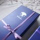 |品牌烫银礼盒,深蓝色细珠光纹纸(实品近似#1a1b32色号),尺寸约19 x 11 x