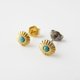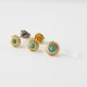这些小耳针具有东方风格的小圆圈耳夹,并饰有微小的天然绿松石。石周围的金使蓝绿绿松石更加突出,使耳夹耳针尽管直径小至 5 毫米,却独特而坚固。