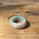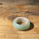 说明:底色为干净春绿,像是戒指般点缀一段洁白玛瑙,可随着转动戴出不同风情。带有少许白冰纹,内侧有一打磨色线,平滑不影响配戴。