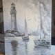 海景油画灯塔绘画帆船艺术品