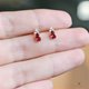 主石是一颗梨形的玫瑰榴石,让人联想到丁香花瓣,让这对耳环耳针可爱又成熟。