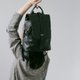 Supportingrole简约百搭线条多隔层多口袋真皮后背包 黑