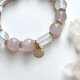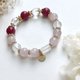 【精灵花圈】玫红色的蔷薇辉石,粉粉嫩嫩的粉晶,带蓝晕月光石,以及特殊切割闪耀白水晶,仿佛戴上了精灵的花圈,奔赴一场愉快盛宴。水晶尺寸偏大,可爱又充满能量,可以参考配戴图(配戴图手围为14cm)。
