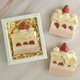 草莓与巧克力戚风蛋糕体,佐水蜜桃与草莓果干,最后点缀上一颗彷真带叶草莓。