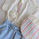 - 风格强烈、高彩度撞色直纹拼接围兜 使用厚实柔软的韩国制三层纱,吸水性极佳 是简单有型、鲜明出众的小时髦代表