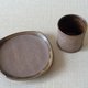 这是一组杯盘组,沉稳的陶土质感与镶嵌图纹相互辉映,展现出迷人的美感。