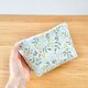 这是使用该面料制成的 20 厘米宽的小袋。它还有一个角撑板,因此您可以将很多东西放入其中。它具有内部织物和柔软的芯,因此坚固。