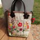 这款亚麻手工刺绣花卉包