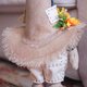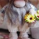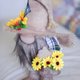 “向日葵”是一位约34厘米高的北欧手工男侏儒,戴着卷角亚麻帽,饰有蓝色格纹拼布与向日葵。怀中提着一个满满花朵与浆果的布袋,像是刚从田野回家的园丁。银棕色的大胡须与素雅米色服装搭配流苏靴子,洋溢着浓浓的乡村氛围。