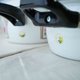 品名:日本杂货-昭和时代全新品白色马赛克风格花朵珐琅硬质单柄锅2.2L