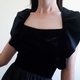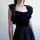 复古 60 年代 70 年代黑色天鹅绒上衣舞会礼服,带荷叶边领口