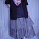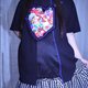 印花部分贴在拼接布上,再用锁边机缝合,为了增加可爱感,在周围加上了褶皱。