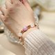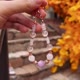 这条手链以 紫锂辉、粉晶与月亮石 为主石,