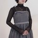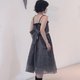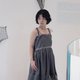 订制 灰色条纹拼接纱裙 细肩带 绑带洋装