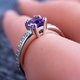 戒身两侧点缀锆石,紫水晶与锆石的和谐感一目了然。