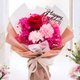 花束以康乃馨和玫瑰为主花,搭配满天星,展现出简约而优雅的设计。选用日本保鲜花制作,可保存两至三年。