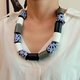 Pallotola是用品牌最大尺寸XL的鼓形纸珠纸珠作成,用深蓝色缎带编织和打结。设计上可短可长,都可以自行调整穿搭。