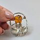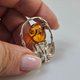这款手工胸针采用 925 纯银与棕色真琥珀石精心打造