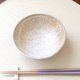 将具有柔和泥土味的细粒红瓷土塑造成曲线柔和的饭碗,然后用水晶釉烧制,呈现出陶器特有的泥土味。