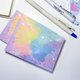 两款无黏性的素材便条本,采用100G道林纸制作,厚薄适中,可使用于日常记事的书写,也可将图案剪下来作为素材使用。