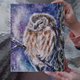 猫头鹰雀Ginna Paola 的原创油画。面板上的混合媒材。