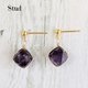 天然宝石耳环:紫水晶 您可以选择以下耳环类型: □ 医疗用316L不锈钢耳扣(18K PVD真空镀层) □ 14K包金耳勾 □ 医疗用316L不锈钢耳钉(18K电镀)