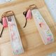 ●钥匙圈开始贩售好多客人想要手机手挂绳,Chloe之前想不透为何不挂脖子要挂手上呢?有一次出摊遇到妈咪胸前抱着宝宝,她只能把手机挂在手中,随时使用,自从那次Chloe积极寻找适合零件扣环,终于问世了。