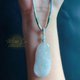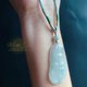 此吊坠以天然冰润翡翠精雕而成,呈现 普贤菩萨乘白象 的尊像。菩萨神情庄严慈悲,象征智慧、德行与大愿大行。白象在佛教中是吉祥瑞兽,寓意坚毅稳重、智慧圆满,与观音相应成为佛教信仰中重要的护佑形象。