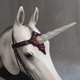Please write in the comments what leather color, the length of the horns, and the color of rhinestones.