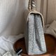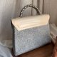 包况方面,整体包况极好,包包采用象牙白漆皮与印有灰色织纹图案的顺滑羊皮,搭配银色金属手柄,展现奢华与独特风格。包形挺立,内外新净,边角没有磨损,以前看图片以为图案部分是像毛呢的布面,但原来是很软滑的羊皮,非常特别,整颗配起来很简洁俐落,绝对是完美收藏品,令人爱不释手!