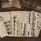 英国古董电影票18张(黑白色)、澳洲车票四款共12张、美国古董票券3张(蓝绿色)、英国复古书页6张、英国双车票款2张、新款英国短车票16款共32张、欧美消戳邮票10枚(不挑款)、阿根廷古董双车票三款共6张。
