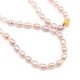 这款项链串连着淡粉色的淡水珍珠,并采用全结绳(All-Knot)的精致工法。