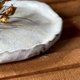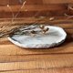 独特风格的陶盘,以无规则造型、白灰釉、浅黄条纹呈现,经过高温烧制,可盛食物,亦可为家居收纳盘或装饰。