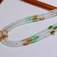- 【清凝】半夏清欢漪梦凝 初见正值夏日,她轻盈,洁白,让我明白了为什么那么多翠友迷恋于珠串。 稍以黄翡,绿翡,古法银点缀,便可洗去白冰带来的单调。一条翡翠项链,如星河落入凡间,点缀于颈间,绽放无尽光彩。