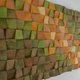 天然松木被干燥和锯成段,其中浸渍天然油单独着色各种颜色。 然后将元件附着在胶合板上并涂上油蜡。 请记住,它完全是手工制作的,每一件都是独一无二的。