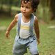 'Petit Marcel' is made from cotton fabric. It has no zippers, no buttons, just elastic waistband. There are pockets at the front and fake pockets at the back. Suspenders can be adjusted to 2 different heights.